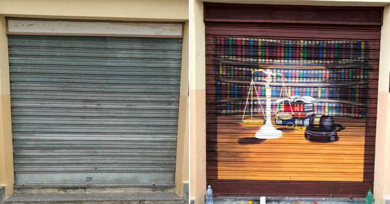 Sestu, anche la serranda grigia di uno studio legale può diventare un'opera d'arte