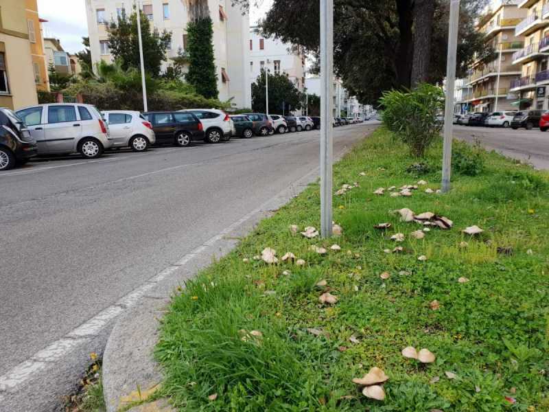 E poco più avanti, in via Scano, quasi all'incrocio con via della Pineta, l'aiuola spartitraffico si è riempita di funghi. Certo, nessuno li avrebbe colti lo stesso, ma qualche operaio del verde pubblico in una situazione normate li avrebbe fatti sparire. Invece caldo e piogge degli ultimi giorni ne hanno permesso la proliferazione.