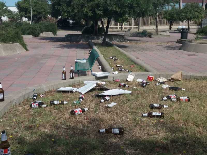 CAGLIARI. Il bidone è lì, a dieci metri. Vuoto. Le bottiglie di birra, a decine, e i cartoni della pizza sono statoi abbandonati sulle fioriere. Questo lo scenario che si presentava questa mattina nei parcheggi della Fiera di Cagliari, sul lato di via Pessagno. Facile anche pensare che nessuno del branco di incivili che ha lasciato quell'immondezzaio avesse in cima ai suoi pensieri la necessità di garantire il distanziamento sociale comunque necessario per evitare una pericolosa ripresa del contagio da coronavirus.