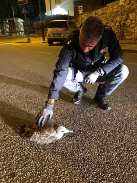 CAGLIARI. Era fermo al centro della carreggiata in via Santa Margherita il pullo di gabbiano, quando i poliziotti della Volante lo hanno trovato stanotte, durante il loro consueto servizio di controllo del territorio.