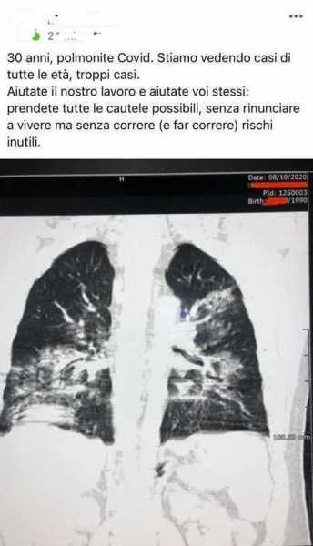CAGLIARI. "Trent'anni, polmonite Covid. Stiamo vedendo casi tutte le età. Troppi". Mai didascalia a corredo di un'immagine è stata più efficace per descriverne il contenuto. L'ha scritta un medico del Santissima Trinità. E la foto è quella scattata su una radiografia ai polmoni di un paziente positivo, contagiato e malato (precisazioni che di questi tempi, pare, sono necessarie). A preoccupare sono quelle macchie bianche: maggiori sono gli addensamenti, più l'infezione è pericolosa. E quegli organi sono molto bianchi. Troppo, appunto. Anche se appartengono a un trentenne.