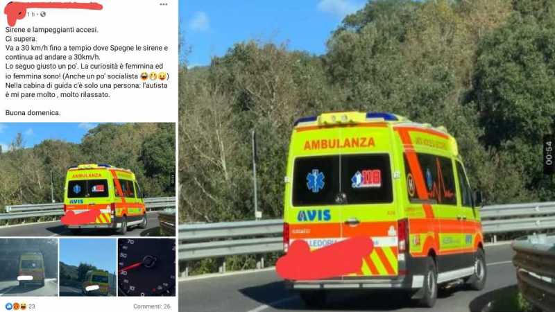 TEMPIO. Un'ambulanza l'ha superata con la sirena accesa, poi ha continuato a procedere ma non ad alta velocità. Così lei l'ha seguita, per sostenere che si trattasse dell'ennesimo mezzo che viaggia vuoto, senza paziente, solo per terrorizzare la popolazione. È successo ieri tra Valledoria e Tempio: l'automobilista ha pubblicato le foto su Facebook, corredandole con il classico testo complottista. Solo che quel post è arrivato ad Alessio Spano, responsabile della base del 118 di Valledoria. Che si trova, suo malgrado, a dover smontare una palese fesseria.