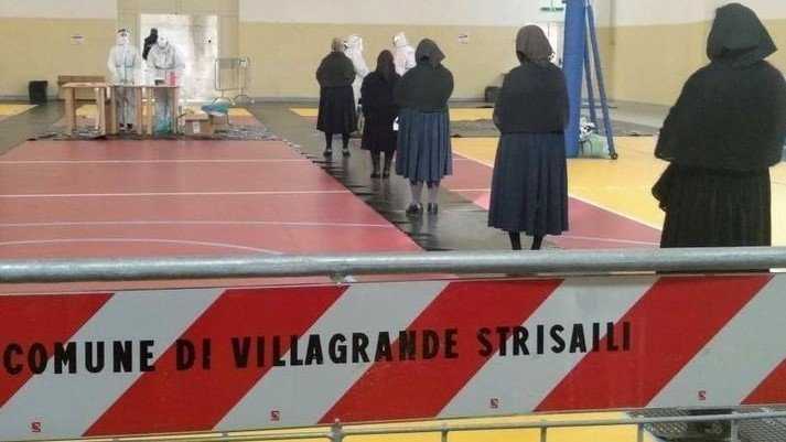 La compostezza delle anziane in nero in fila per lo screening a Villagrande Strisaili