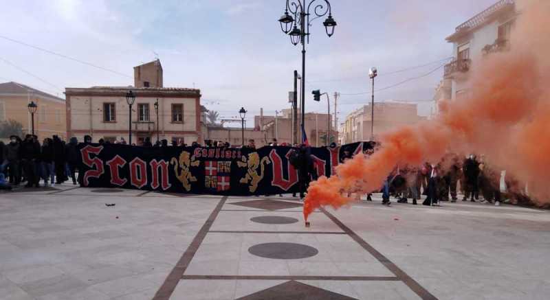 SELARGIUS. Gli Sconvolts Cagliari hanno dato l'addio a uno del gruppo: Carlo Carota, scomparso nei giorni scorsi a 46 anni. Lo hanno fatto a modo loro, ma in modo composto e silenzioso durante tutta le cerimonia funebre. Il grande striscione del gruppo di ultrà ha dominato il sagrato della chiesa dell'Assunta, a Selargius. E un fumogeno ha colorato l'aria per dare l'ultimo saluto a uno storico tifoso del Cagliari.