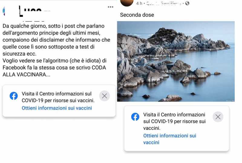 Se non fosse che il meccanismo che dirotta gli utenti è governato da un algoritmo. Che non va tanto per il sottile. E sbaglia. Il disclaimer compare anche quando si prova a scrivere di "coda alla vaccinara" - buona, certo, ma non per contrastare l'epidemia - e anche quando si pubblica un foto con un testo corredato dalla parola "dose", magari riferita a quella di aria pulita che si respira in riva al mare.