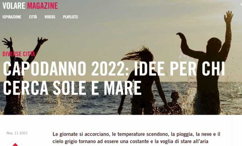 "Se il clima rigido invernale ti deprime e per finire in bellezza l’anno ti piacerebbe prenderti una pausa dal cappotto e dai guanti, ti proponiamo alcune mete dove passare un Capodanno 2022 “solare”: questo il messaggio.