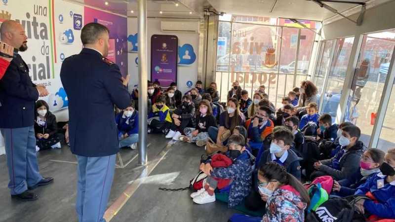 CAGLIARI. Prima tappa sarda, oggi, della campagna educativa itinerante della polizia di Stato "Una vita da Social". In piazza dei Centomila a Cagliari, il personale specializzato della Polizia Postale, all'interno dell'aula multimediale allestita nel truck brandizzato con i loghi istituzionali della Polizia di Stato, ha accolto circa 130 tra alunni e docenti del Convitto Nazionale, dell'Istituto Comprensivo Selargius 1 e dell'Istituto paritario "Sacra Famiglia" di Cagliari.