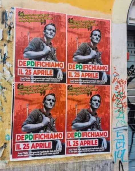 ROMA. "Mi nonno ai nonni de quelli der Battaglione Azov je sparava, mica je regalava le armi". Questa la scritta che compare su un manifesto, che inneggia alla "dePdificazione" della festa del 25 aprile, affisso a Roma dal collettivo antifascista Militant: una critica all'invio di armamenti all'Ucraina da parte dell'Italia, con l'appoggio del partito democratico.