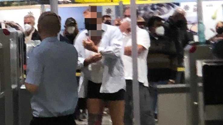 L'episodio si è verificato stasera in aeroporto di fronte agli occhi increduli degli altri passeggeri divertiti. Qualcuno ha immortalato la scena con lo smartphone.