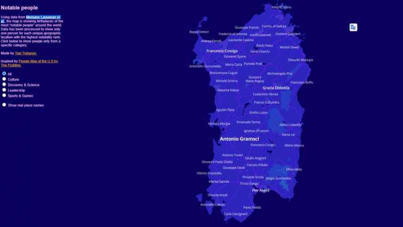 Basta cercare il comune desiderato, su un mappamondo interattivo, e si scopre chi è il concittadino famoso. Il flusso di dati è determinato, per farla semplice, da una sorta di algoritmo che ha analizzato i dati presenti su Wikipedia e Wikidata.