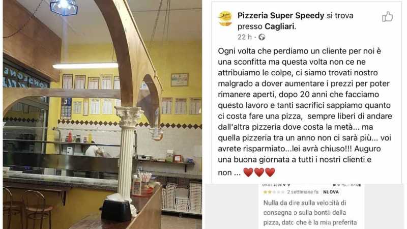 "Ogni volta che perdiamo un cliente per noi è una sconfitta ma questa volta non ce ne attribuiamo le colpe, ci siamo trovati nostro malgrado a dover aumentare i prezzi per poter rimanere aperti", scrivono dalla pizzeria.