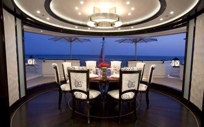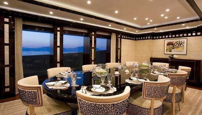 Questa maxi villa galleggiante, dopo aver fatto tappa in Costa Azzurra, è arrivata in acque di Sardegna, precisamente a Santa Margherita, davanti alla spiaggia del Forte Village. Ecco qualche immagine degli interni.