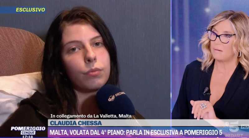 LA VALLETTA. "Mi ha detto 'Tu da questa stanza non ne esci via', ho avuto tanta paura. Lui entrava e usciva dal bagno, continuamente. Sono andata in balcone e mi sono buttata". È il terribile racconto di Claudia Chessa, la diciottenne di Arzachena che qualche giorno fa è finita sulle pagine di tutti i giornali perché precipitata dal balcone di una camera d'hotel a Malta, dove si trovava con il fidanzato. La giovane ha parlato in diretta nella trasmissione “Pomeriggio Cinque”, condotta da Myrta Merlino, su Canale5. Nelle sua testimonianza gli ultimi momenti prima di quel lancio volontario per sfuggire, racconta Chessa, all'aggressione del ventiseienne, anche lui di Arzachena. "Cercavo di tranquillizzarlo con le parole, ma era impossibile", continua la diciottenne, che intanto è stata dimessa dall'ospedale, "Ho pensato a mia madre, ai miei nipoti. Ero disperata. Sono andata sul balcone e mi sono calata, sono rimasta qualche secondo appesa e ho guardato se stesse arrivando perché avevo paura mi buttasse lui. Poi ho dovuto mollare la presa".