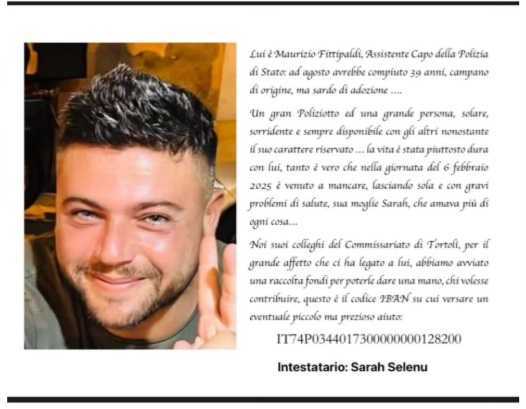 "Lui è Maurizio Fittipaldi, Assistente Capo della Polizia di Stato: ad agosto avrebbe compiuto 39 anni, campano di origine, ma sardo di adozione. Un gran Poliziotto ed una grande persona, solare, sorridente e sempre disponibile con gli altri nonostante il suo carattere riservato. La vita è stata piuttosto dura con lui, tanto è vero che nella giornata del 6 febbraio 2025 è venuto a mancare, lasciando sola e con gravi problemi di salute, sua moglie Sarah, che amava più di ogni cosa.