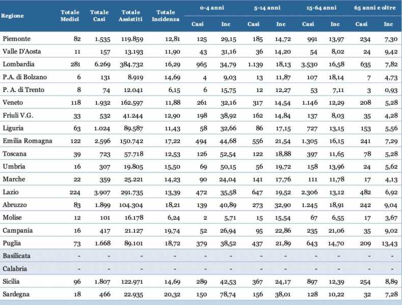 A fare i conti con virus influenzali (di vario tipo) sono in particolare i bambini: l’incidenza più alta, dice il report, si registra nelle fasce di età pediatrica, soprattutto tra neonati, lattanti e bambini sotto i quattro anni: in Sardegna, ad esempio, è di 78,74 casi ogni 1000 assistiti.