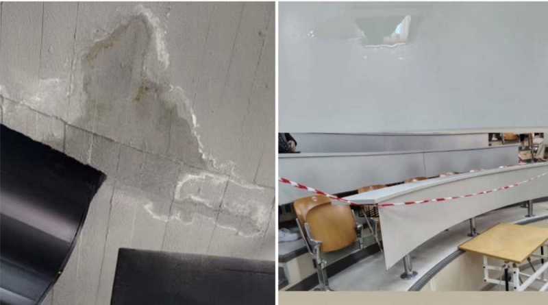 CAGLIARI. "Aule sovraffollate, studenti spesso in piedi o seduti per terra durante le lezioni. Oggi di nuovo problemi nell'aula 1B del corpo di psicologia". La denuncia arriva da una rappresentante degli universitari di Cagliari, Bianca Pili, che pubblica anche le foto delle infiltrazioni d'acqua dal soffitto che si sono ripresentate oggi, nonostante i lavori fossero già stati effettuati. Non risolutivi però, a quanto pare. "Ci avevano detto che avrebbero fatto manutenzioni per l’impermeabilizzazione del soffitto e le avevano fatte. Oggi però siamo punto e a capo", attacca.