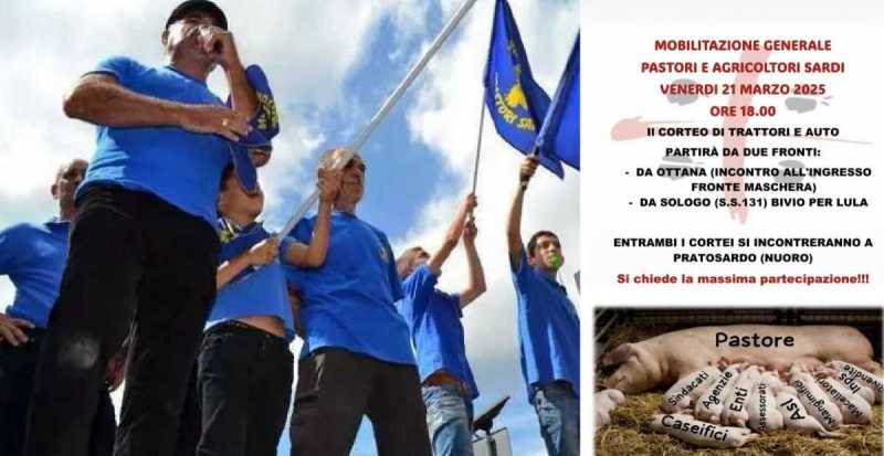 CAGLIARI. I pastori sardi si preparano per una nuova mobilitazione. Dopo la guerra del latte del febbraio 2019 gli allevatori sardi insieme agli agricoltori stanno organizzando due cortei di protesta - in auto e in trattore - in programma venerdì 21 marzo nel Nuorese: il primo parte da Ottana, il secondo da Sologo. Punto di incontro finale sulla Statale 131 dcn all'altezza della zona industriale di Nuoro a Pratosardo dove si prevedono rallentamenti e disagi al traffico.