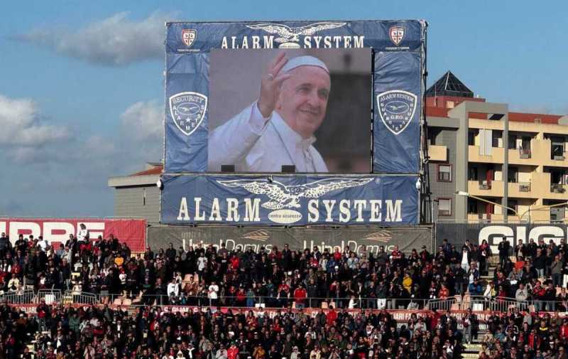 CAGLIARI. Una foto sorridente di Papa Francesco sul maxi schermo della Unipol Domus. Prima del fischio d'inizio di Cagliari-Fiorentina tutto lo stadio è rimasto in silenzio, nel minuto di raccoglimento disposto dalla Figc per il Pontefice morto lunedì mattina all'età di 88 anni. Poi l'applauso caloroso e l'inizio del match.