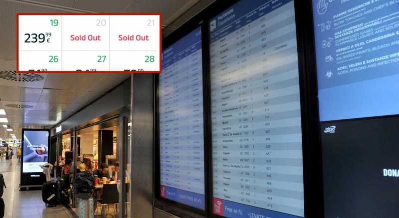 CAGLIARI. C’è anche il Milano-Cagliari tra i voli segnalati dal Codacons per le impennate dei prezzi sotto Natale, fuori dalla continuità territoriale: la tratta sale in questo periodo del +350% rispetto a una data “x” di gennaio, da 18 a 81 euro. Il 19 dicembre, così come il 22 e il 23, i voli con Aeroitalia costano 240 euro. Sono già sold out invece per il fine settimana: impossibile prenotare per il 20 e 21. Se si vola da Roma a Cagliari l'aumento del biglietto rispetto alle tariffe di gennaio è del +182%.
