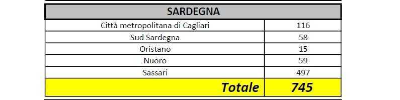 I contagiati di ieri in Sardegna con la suddivisione per provincia